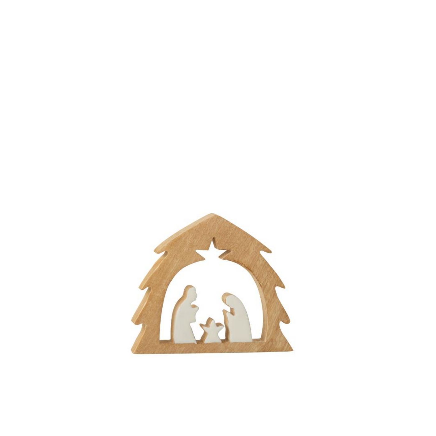 J-Line Kerststal In Boom Mangohout Wit-Naturel Small L17xB3xH20 cm