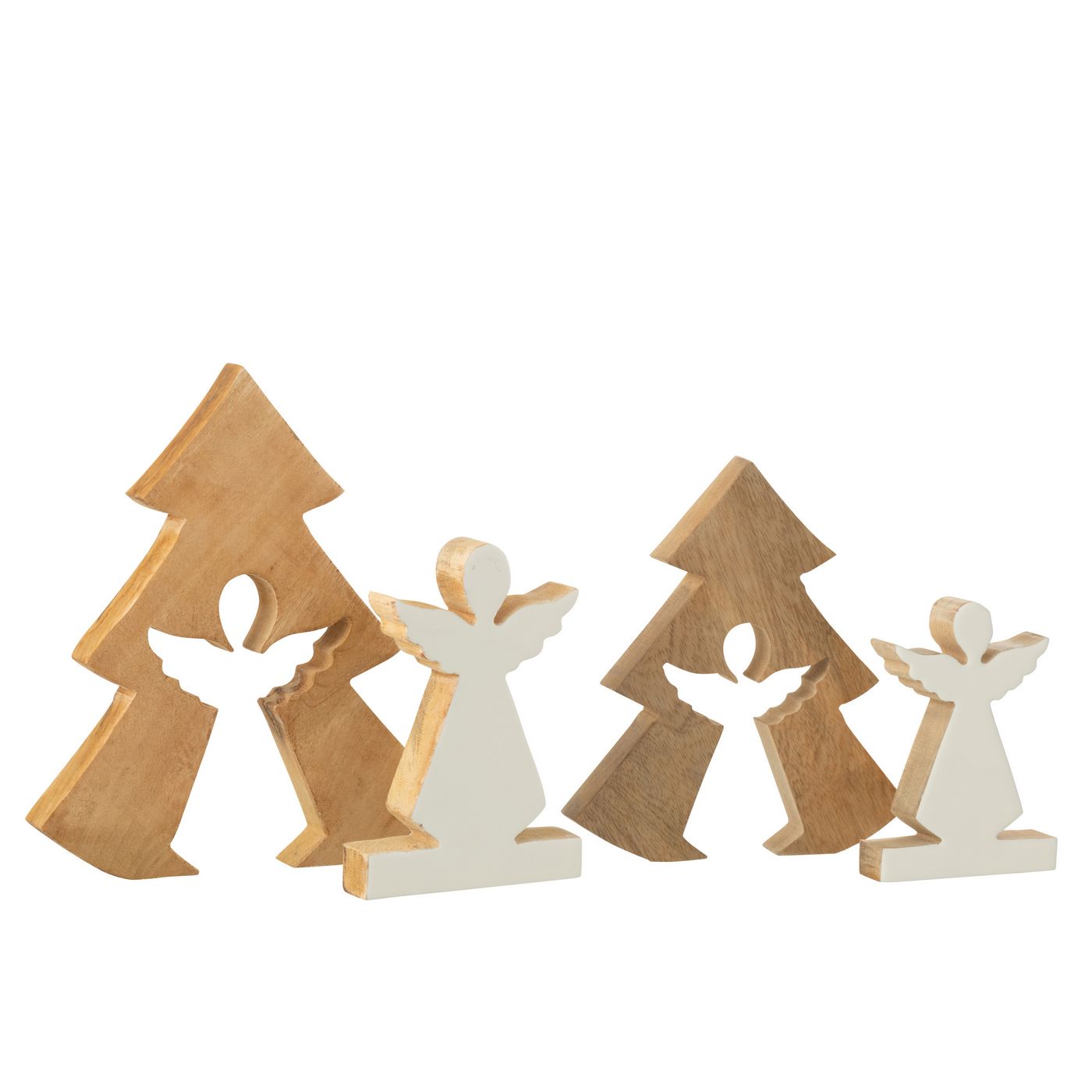 J-Line Engel In Boom Mangohout Wit-Naturel Large L20xB3xH25 cm