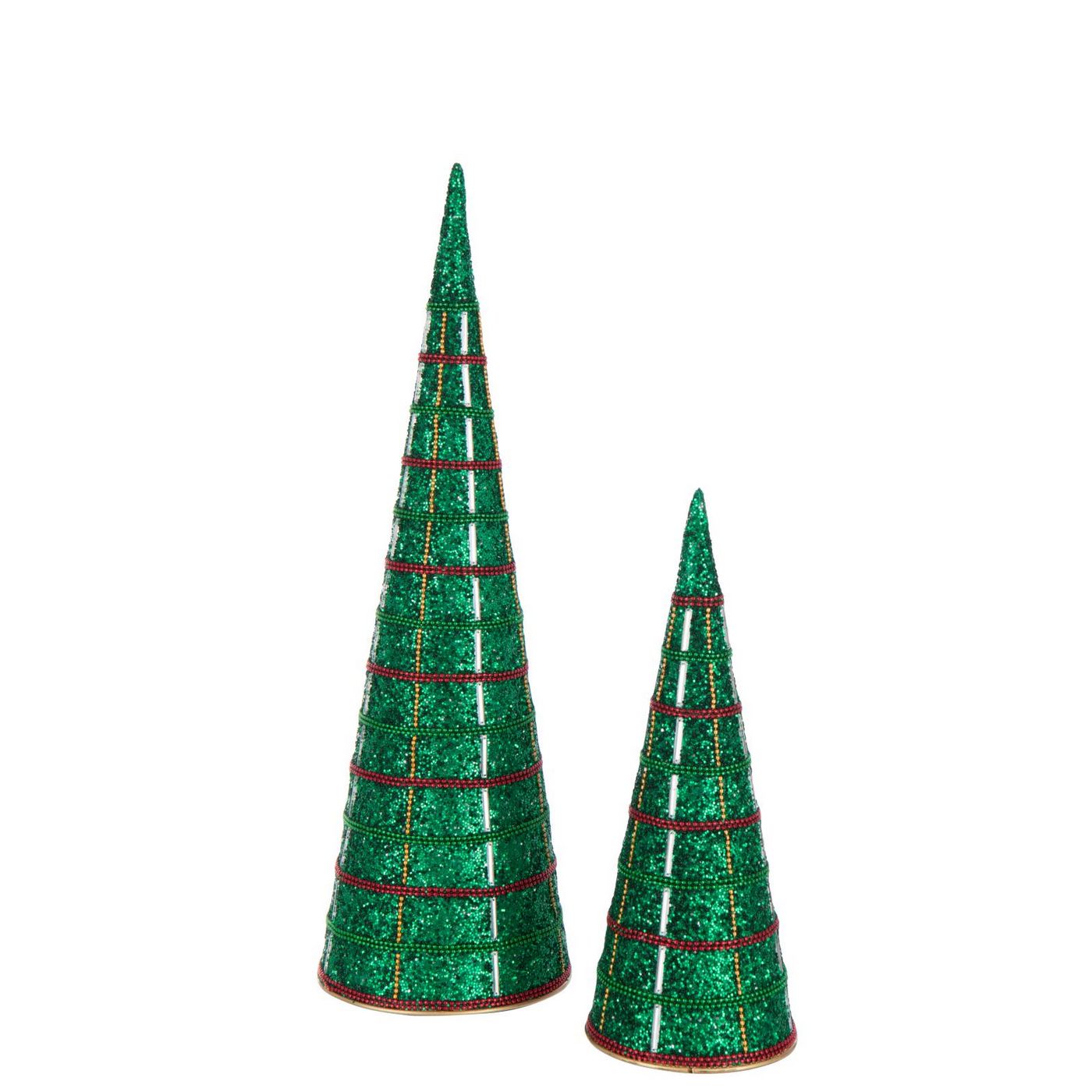 J-Line Set Van 2 Kegel Ijzer-Kralen Smaragdgroen L12xB12xH40 cm
