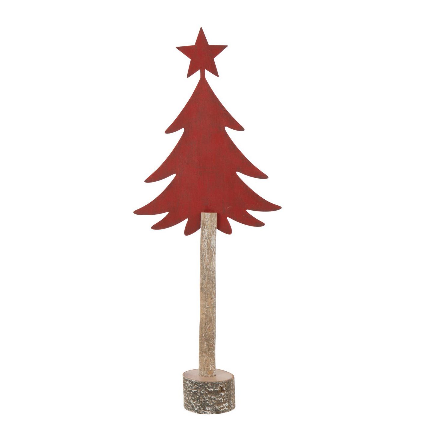 J-Line Kerstboom-Ster Ijzer-Paulowniahout Kerstrood Large L24xB9xH60 cm