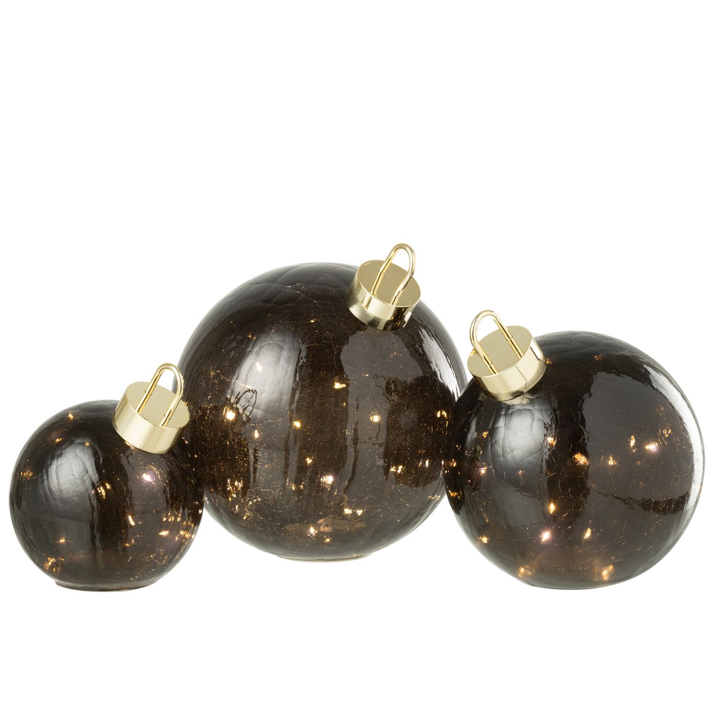 J-Line by Jolipa Boule De Noël Led Verre Noir Large