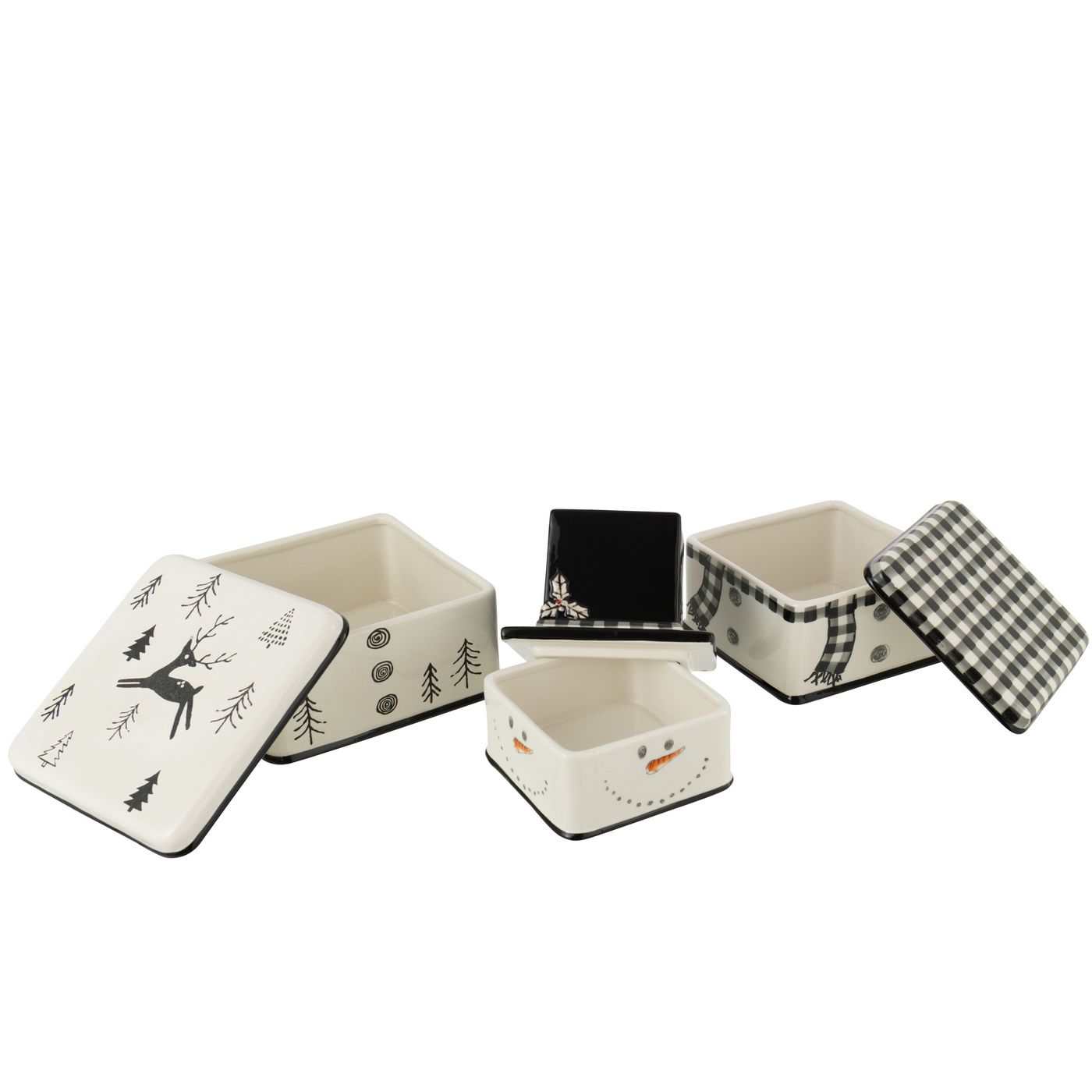 J-Line by Jolipa Boite De 3 Boite Bonhomme De Neige Dolomite Blanc/Noir
