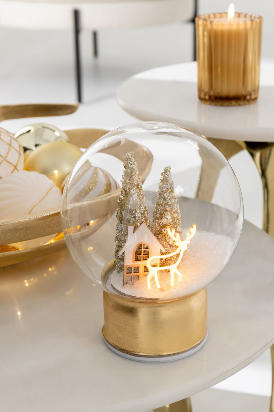 J-Line by Jolipa Boule Led Renne Verre Doré/Blanc Small