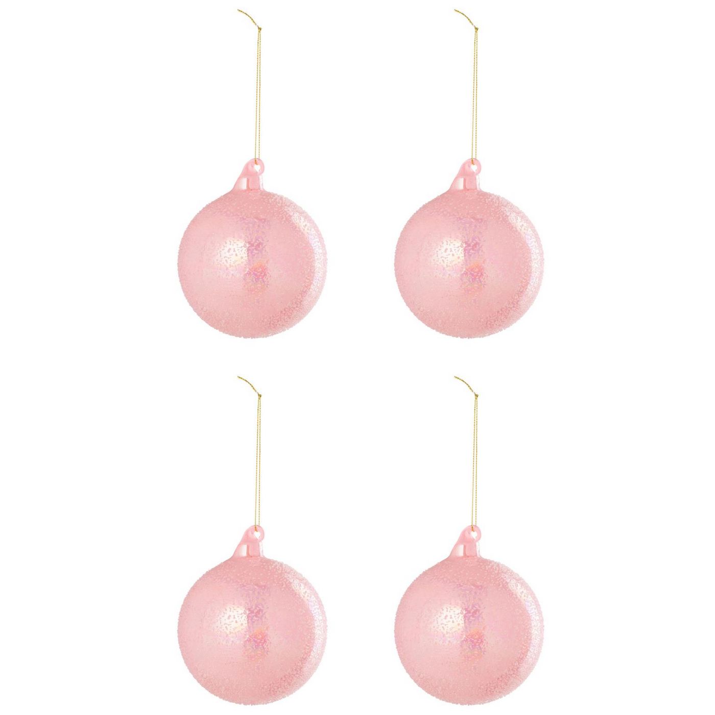 J-Line Doos Van 4 Kerstbal Glas Lichtroze L10xB10xH10 cm
