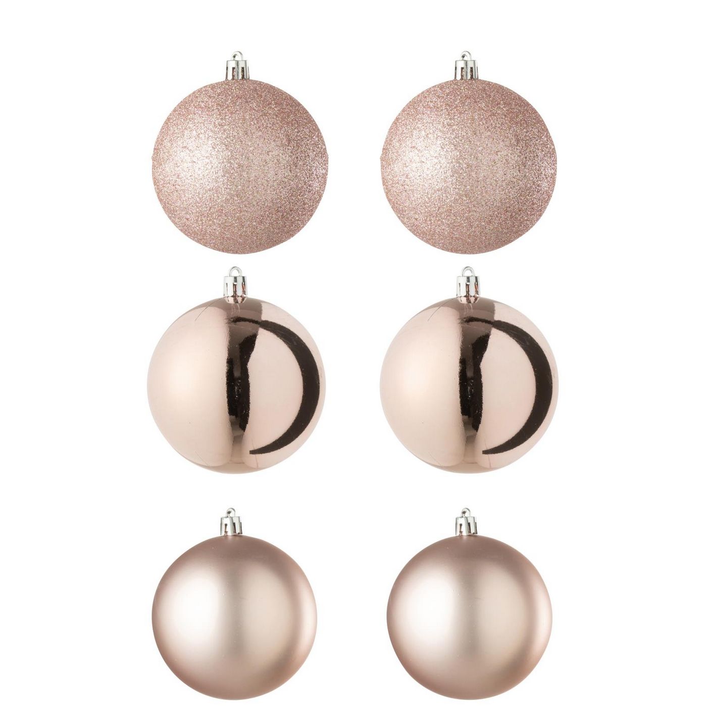 J-Line Doos Van 6 Kerstbal Plastiek Lichtroze L16xB8xH24 cm