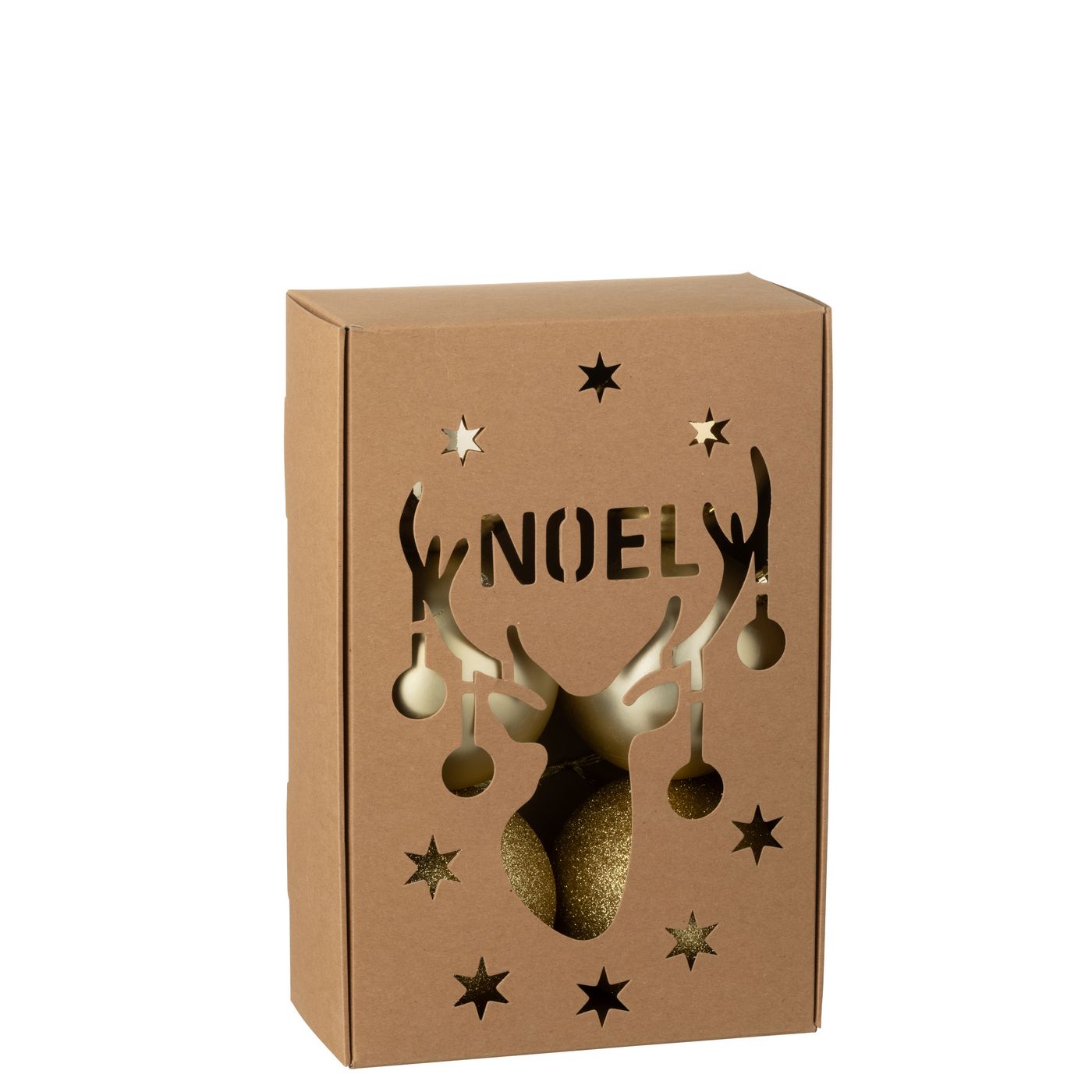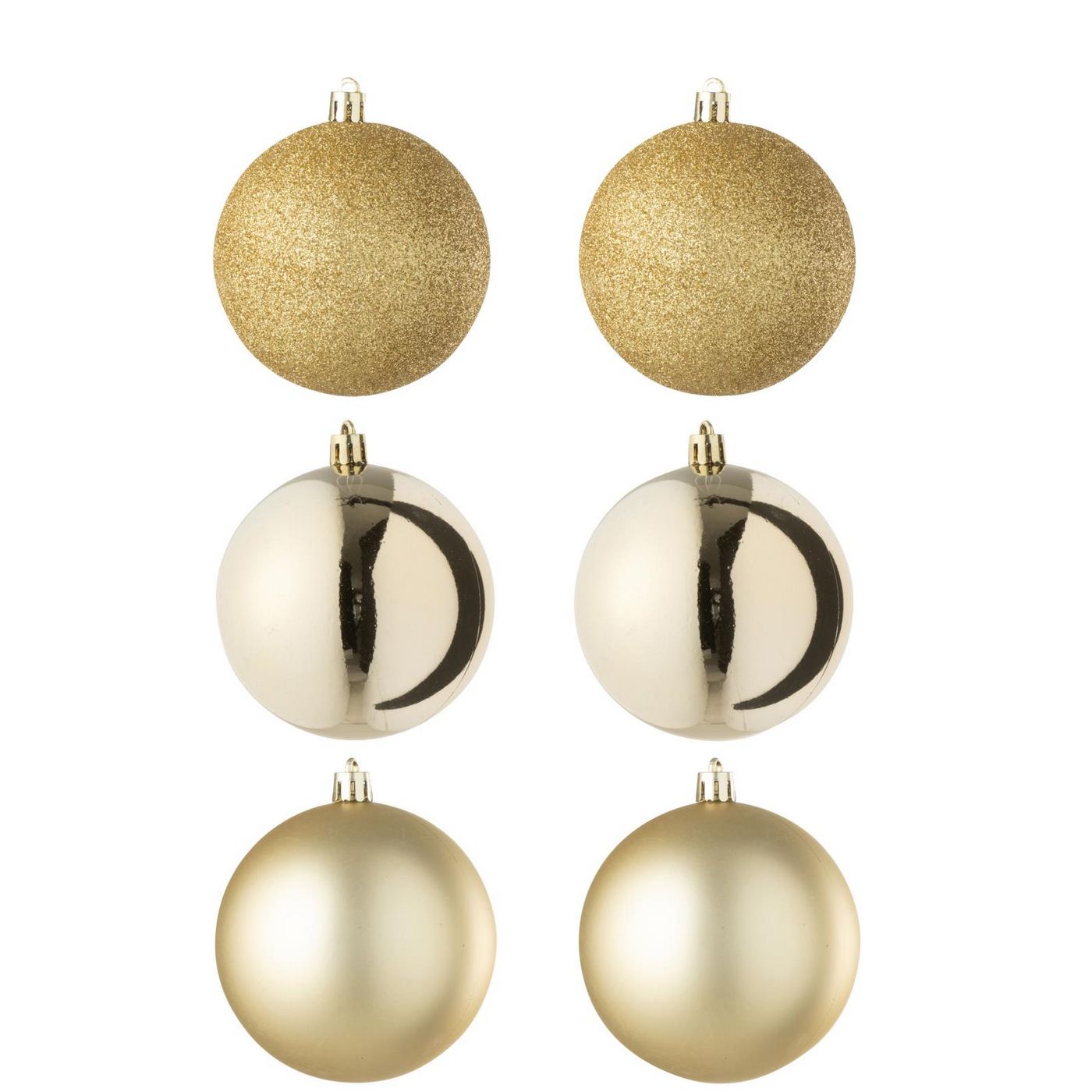 J-Line Doos Van 6 Kerstbal Plastiek Goudkleurig L16xB8xH24 cm
