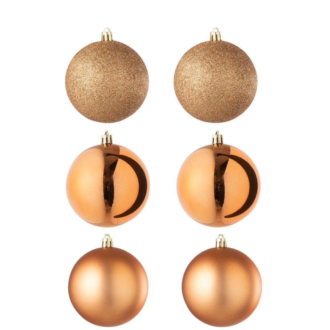J-Line Doos Van 6 Kerstbal Plastiek Oranje L16xB8xH24 cm