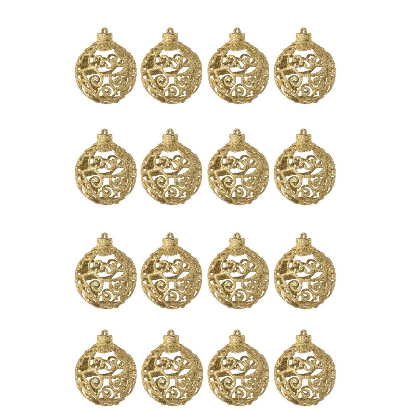 Jline Doos Van 16 Kerstbal Barok Patroon Plastiek Goudkleurig
