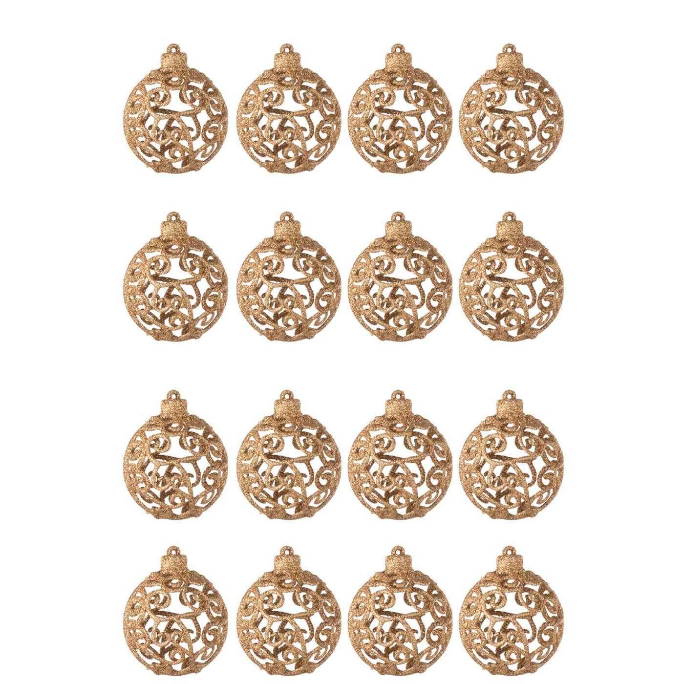 Jline Doos Van 16 Kerstbal Barok Patroon Plastiek Perzik