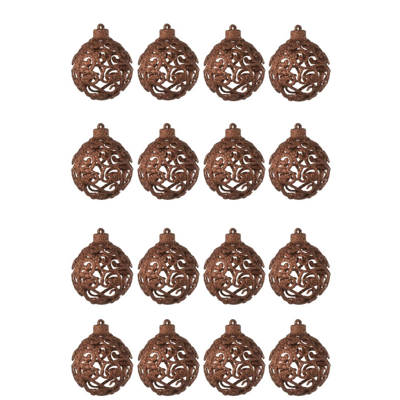 Jline Doos Van 16 Kerstbal Barok Patroon Plastiek Donkerbruin