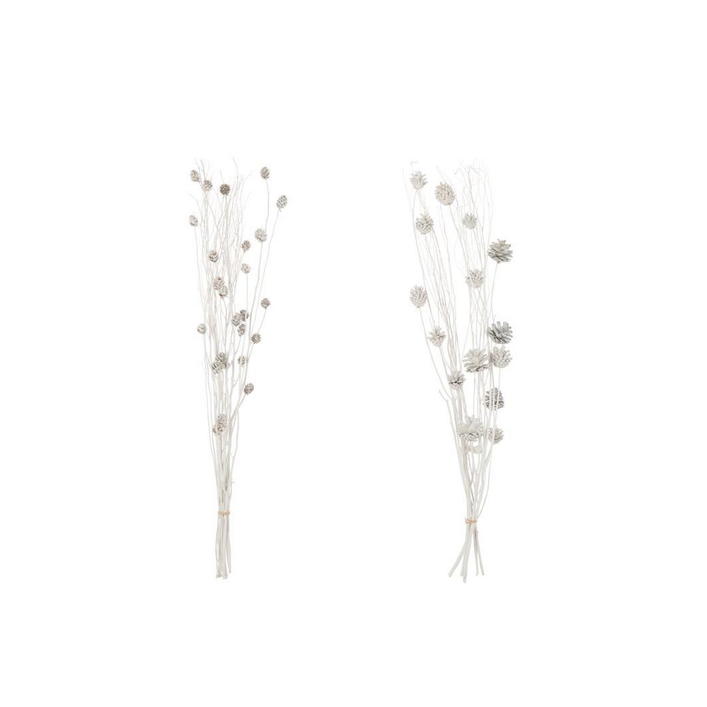 J-Line by Jolipa Branche Pomme De Pin Fleur Séchée Blanc Assortiment De 2