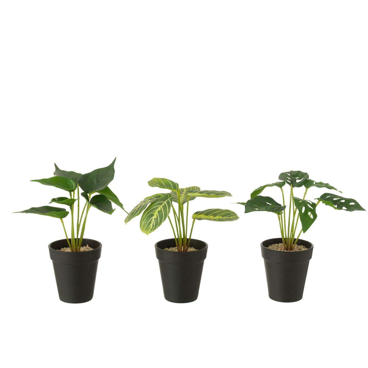 J-Line by Jolipa Plantes En Pot Artificiel Vert Assortiment De 3