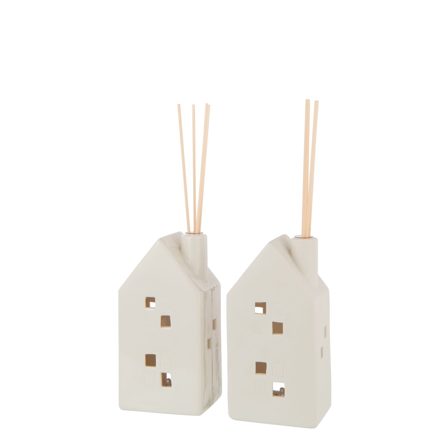 J-Line by Jolipa Vase Led Maison Coeur Argile Blanc Assortiment De 2