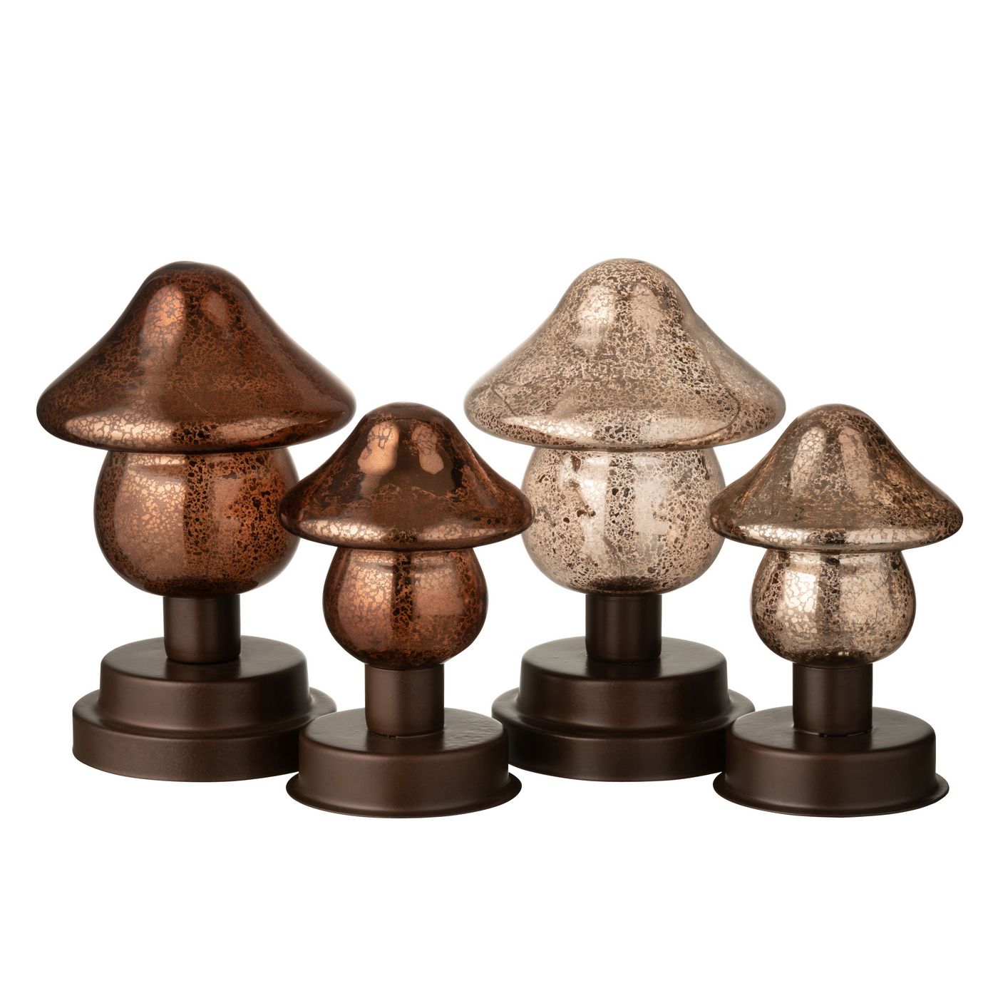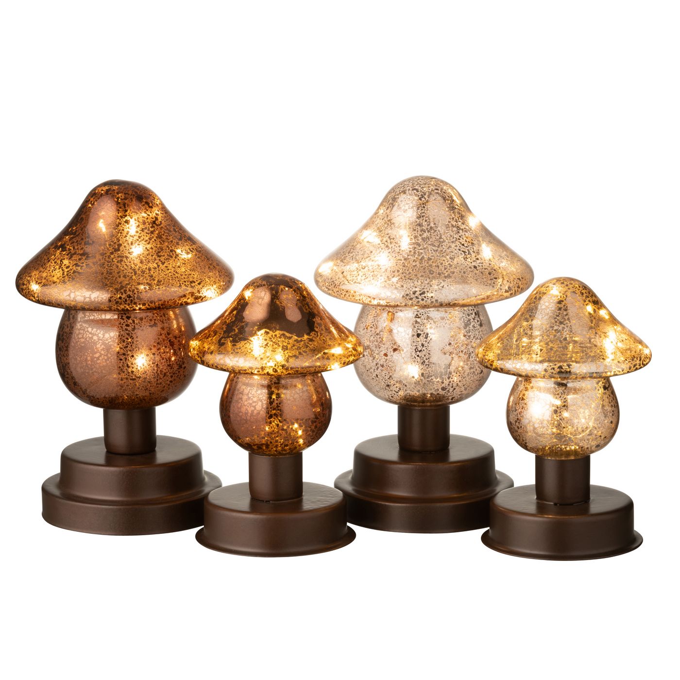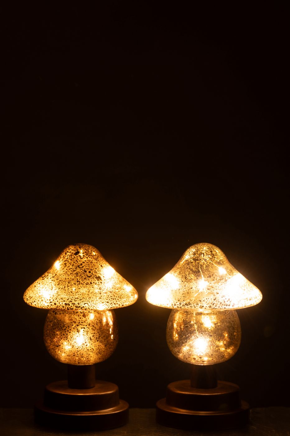 J-Line by Jolipa Champignon Led Sur Socle Verre Marron/Champagne Large Assortiment De 2