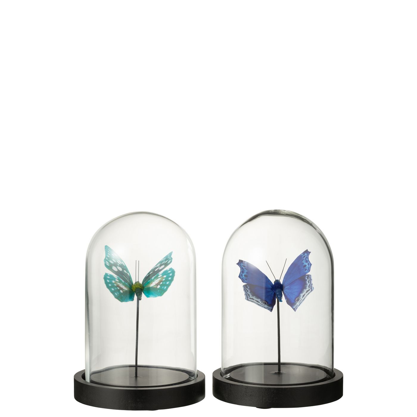 J-Line by Jolipa Cloche Papillon Verre/Papier Bleu Small Assortiment De 2