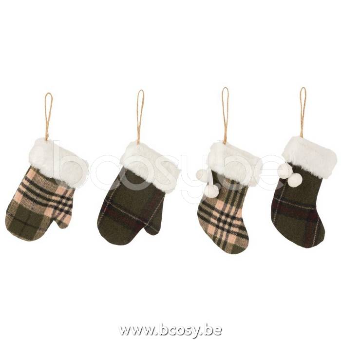 Jline Hanger Want Kerstsok Textiel Geruit Kaki Bruin Assortiment Van 4