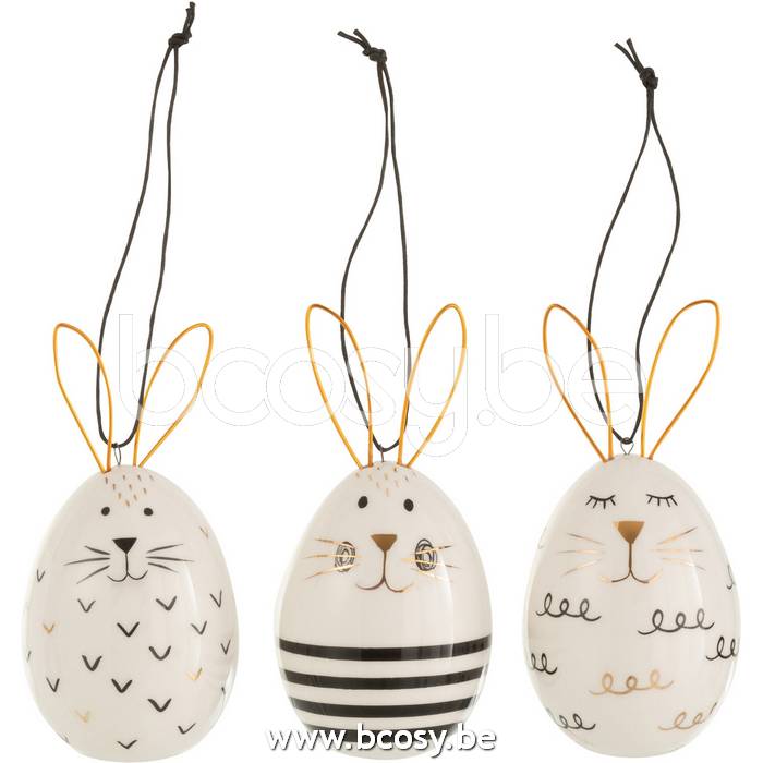 J Line Uovo Da Sospendere Coniglio Ceramica Mix Assortimento Di 3