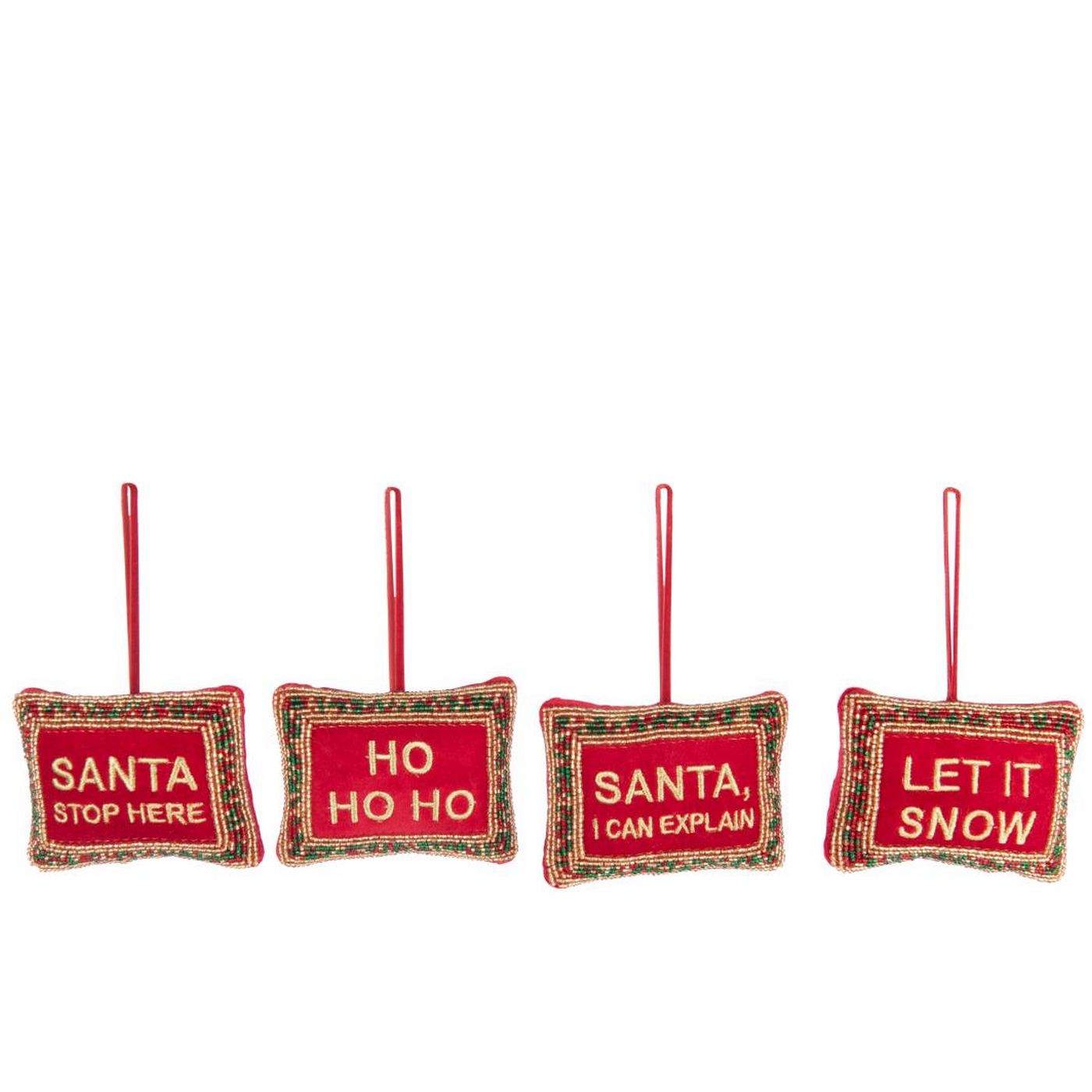 J Line Pendente Citazioni Natalizie Perle/Velluto Rosso Natale/Oro Assortimento Di 4