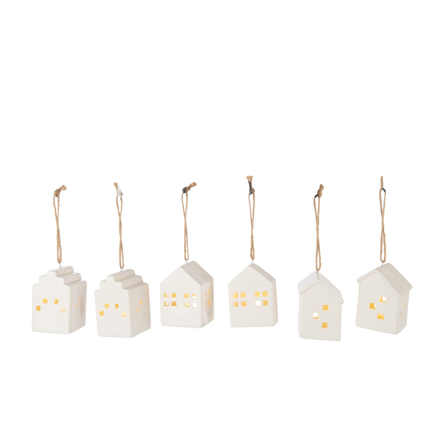 J-Line by Jolipa Suspension Led Maison Argile Blanc Assortiment De 6