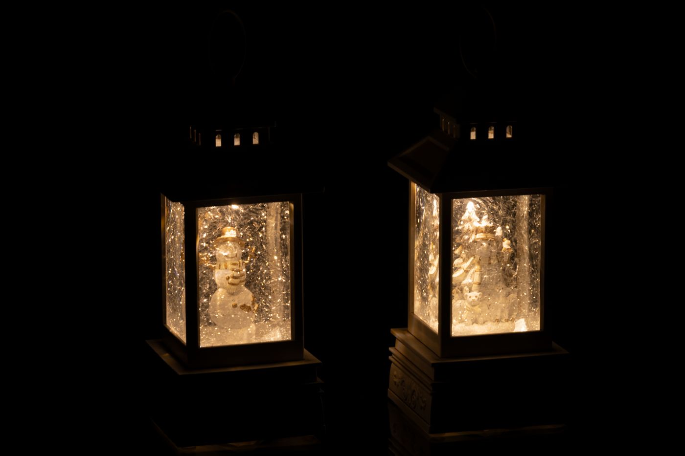 Jline Waterbol Lantaarn Sneeuwman Plastiek Wit Assortiment Van 2