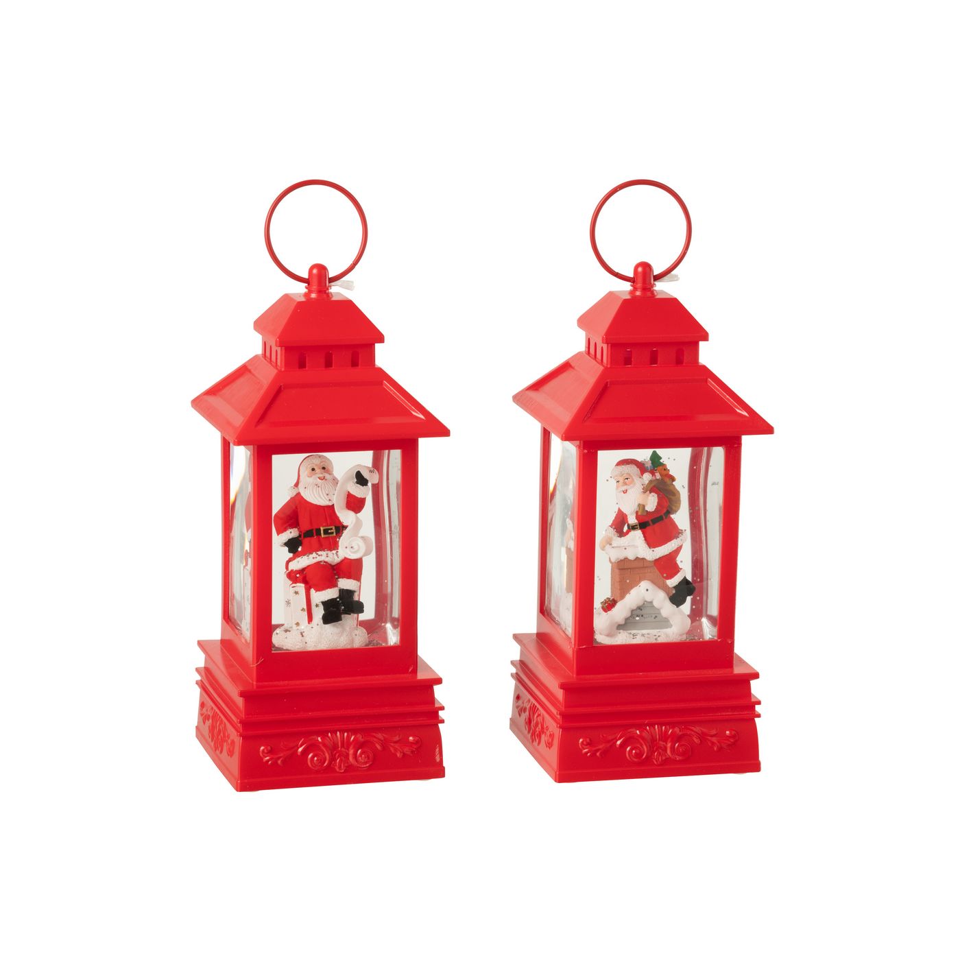 Jline Waterbol Lantaarn Kerstman Plastiek Kerstrood Assortiment Van 2