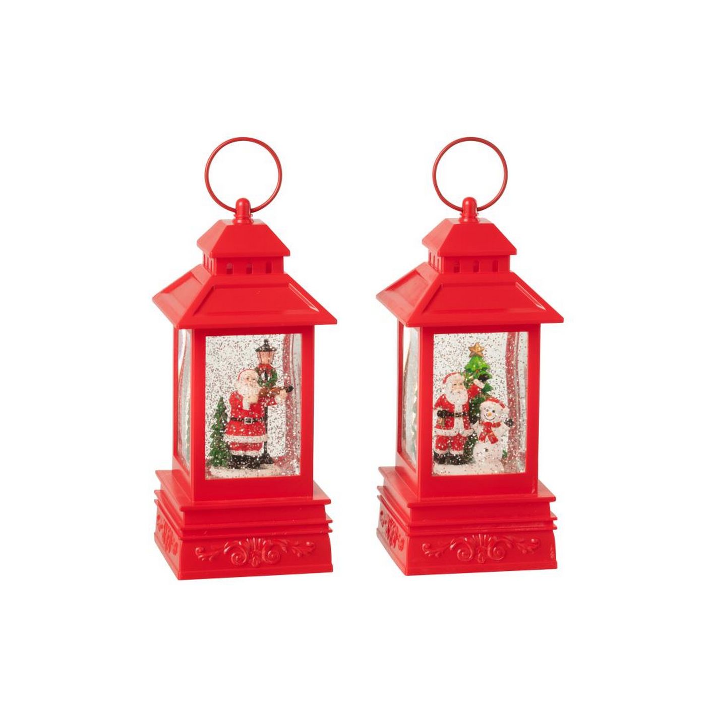 Jline Waterbol Lantaarn Kerstman Plastiek Kerstrood Assortiment Van 2