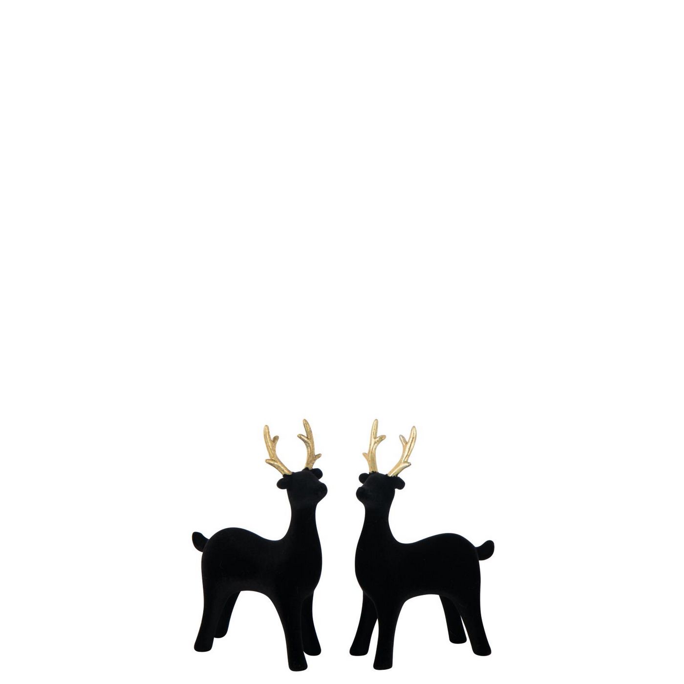 J-Line Rendier Fluweel Polyresin Zwart-Goudkleurig L11xB5xH16 cm