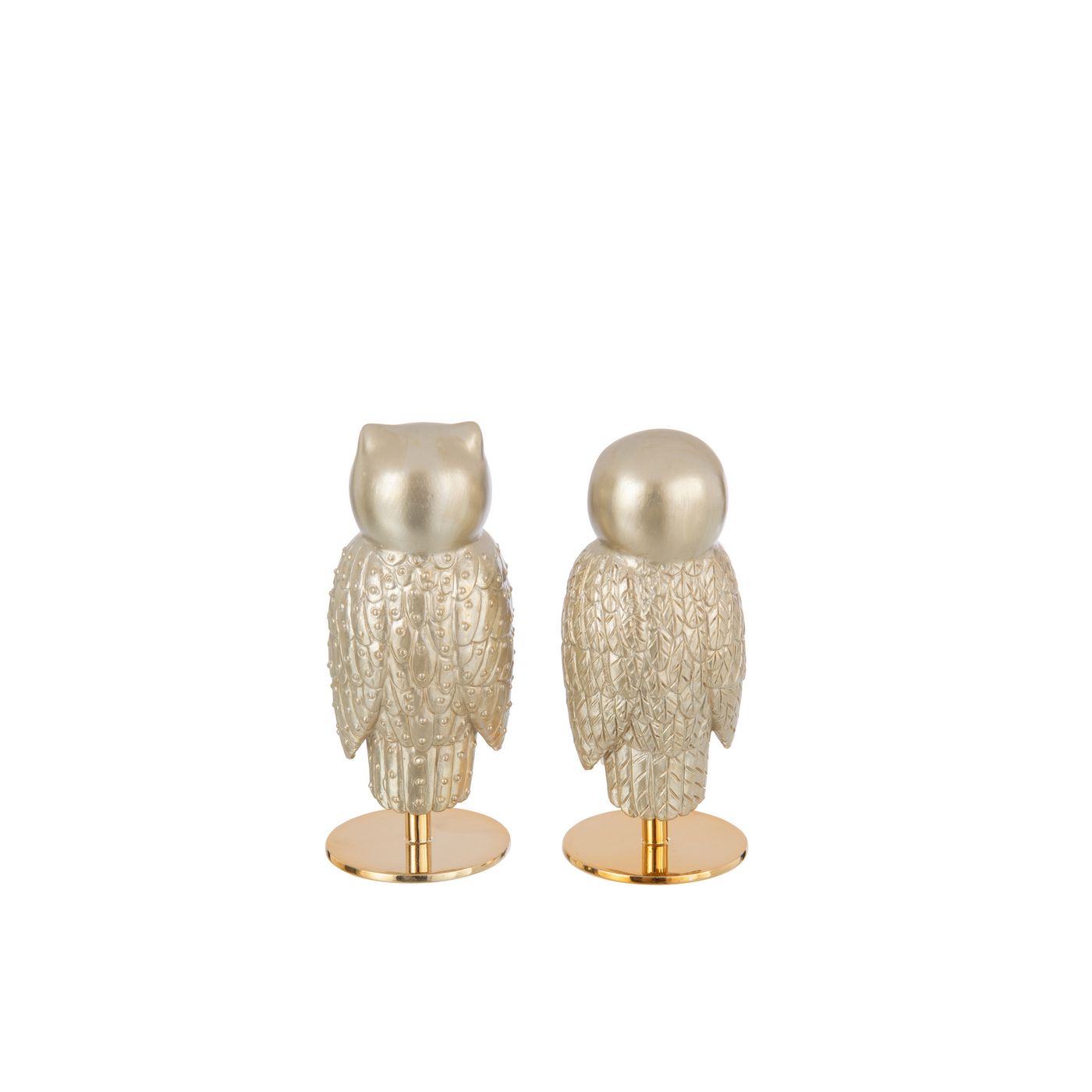 J-Line by Jolipa Hibou Sur Base Yeux Fermés Poudre De Chaux Blanc/Doré Assortiment De 2