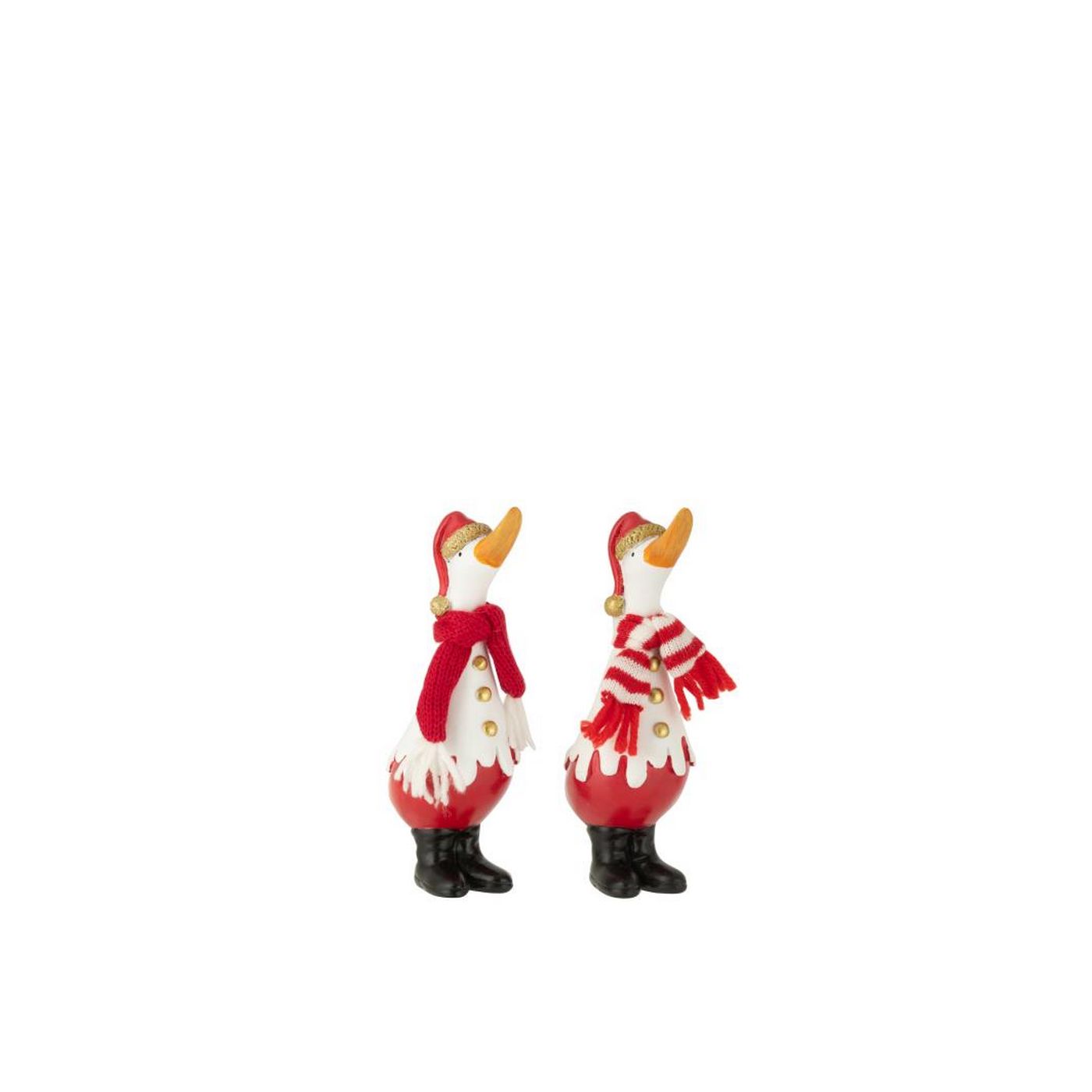 Jline Eend Winter Polyresin Wit Rood Small Assortiment Van 2