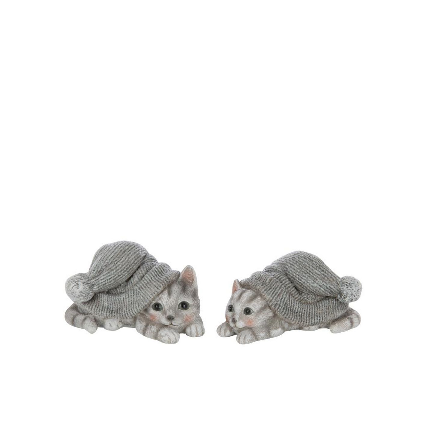 Jline Kat Hoed Polyresin Grijsblauw Wit Medium Assortiment Van 2