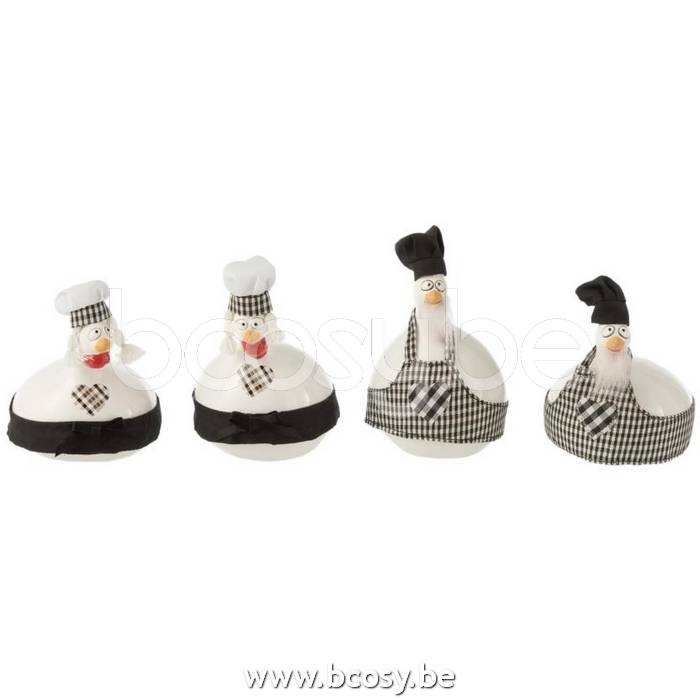 Jline Kip Chef Keramiek Wit Zw S Assortiment Van 4