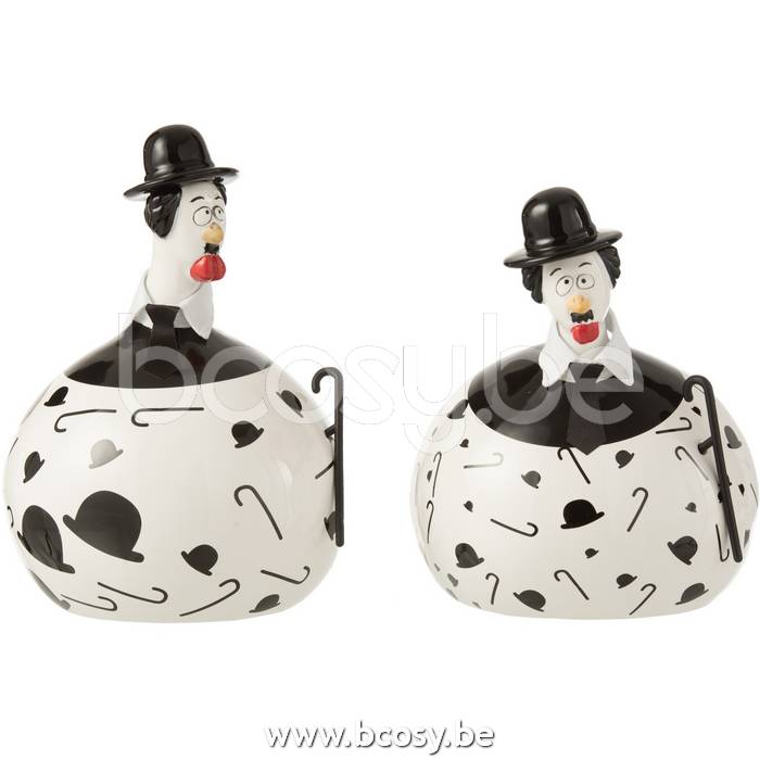 J-Line by Jolipa Poule Chaplin Ceramique Blanc/Noir Large Assortiment De 2