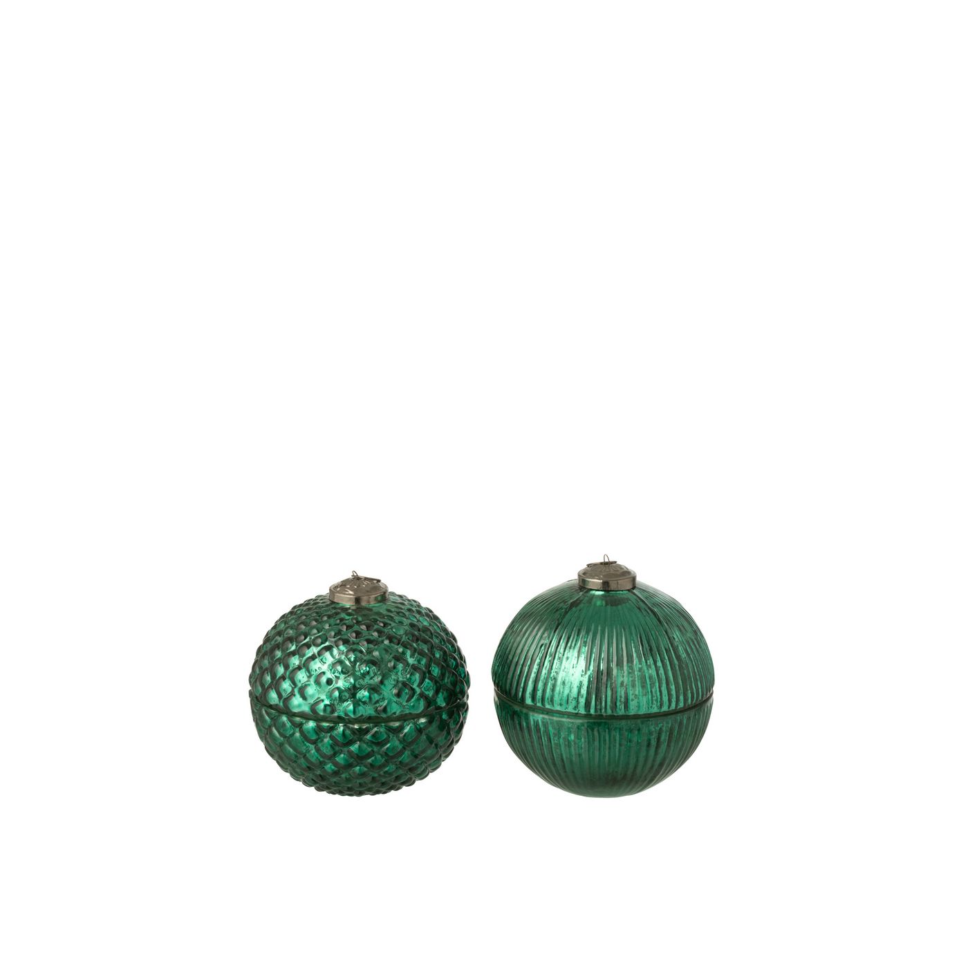 J-Line Geurkaars Kerstbal Glas Groen Small L13xB13xH13 cm