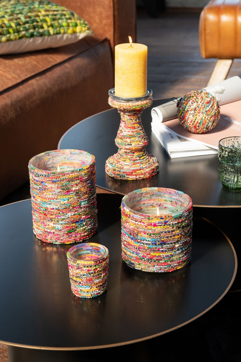 J Line Candle Holder Beads Glass Pink/Gold Colored Large