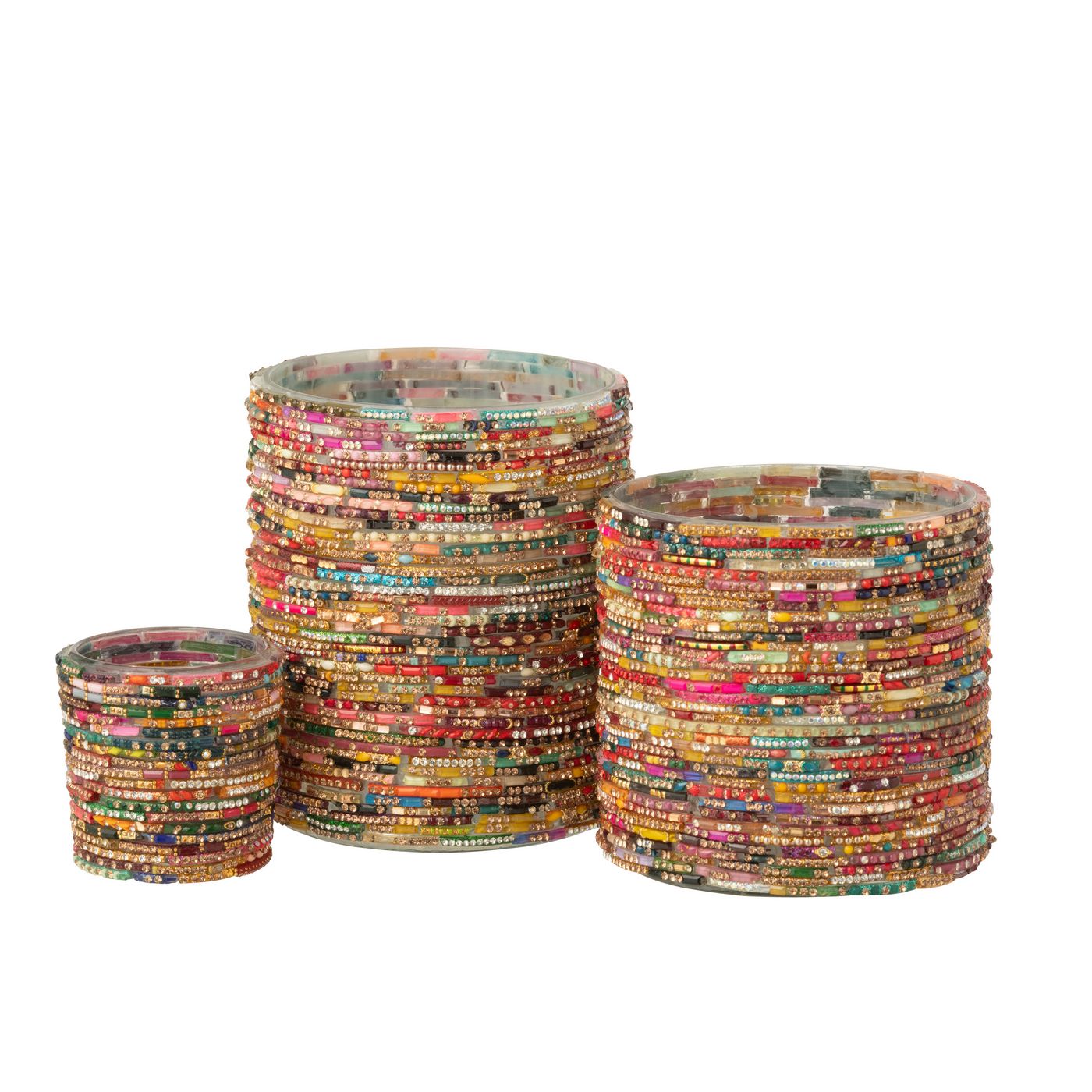 J Line Kerzenständer Perlen Glas Rosa/Goldfarben Large