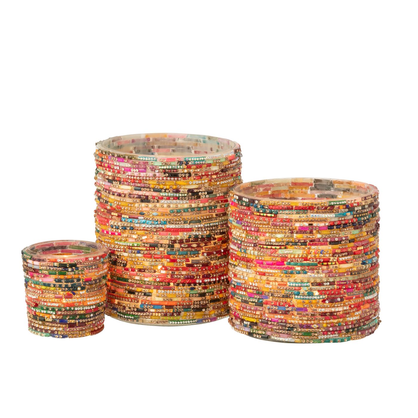 Jline Kaarshouder Kralen Glas Roze Goudkleurig Large