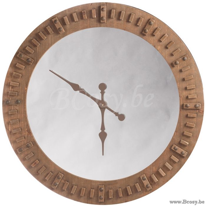 J-Line Naturelkleur houten Wandklok met Spiegel in hout Naturel Large Ø120