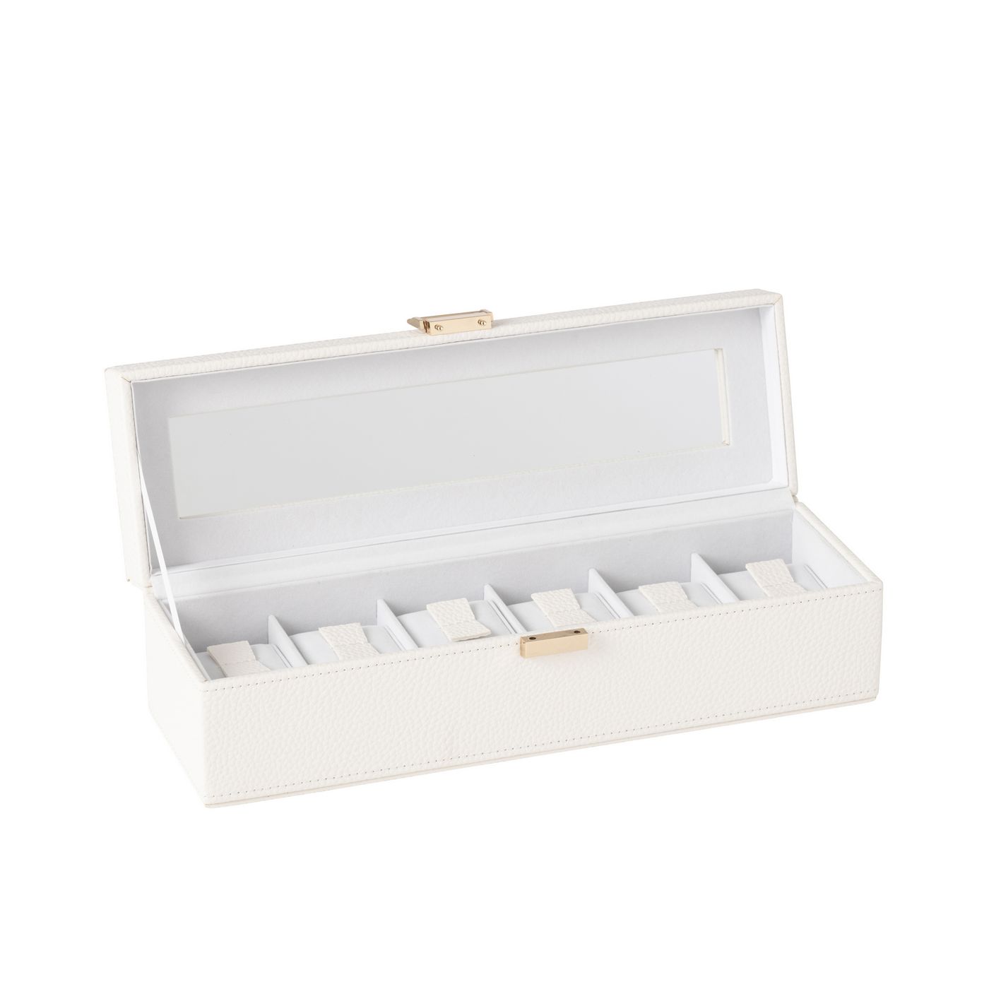 J Line Uhrenbox 6 Fächer Kunstleder Weiß