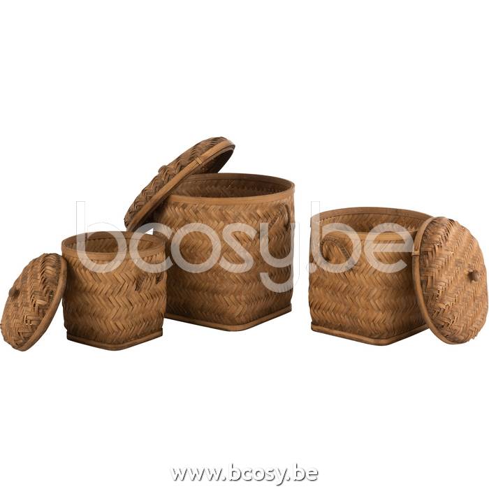 J-Line Set Van Drie Opbergmanden Bamboe Naturel L41xB41xH45 cm