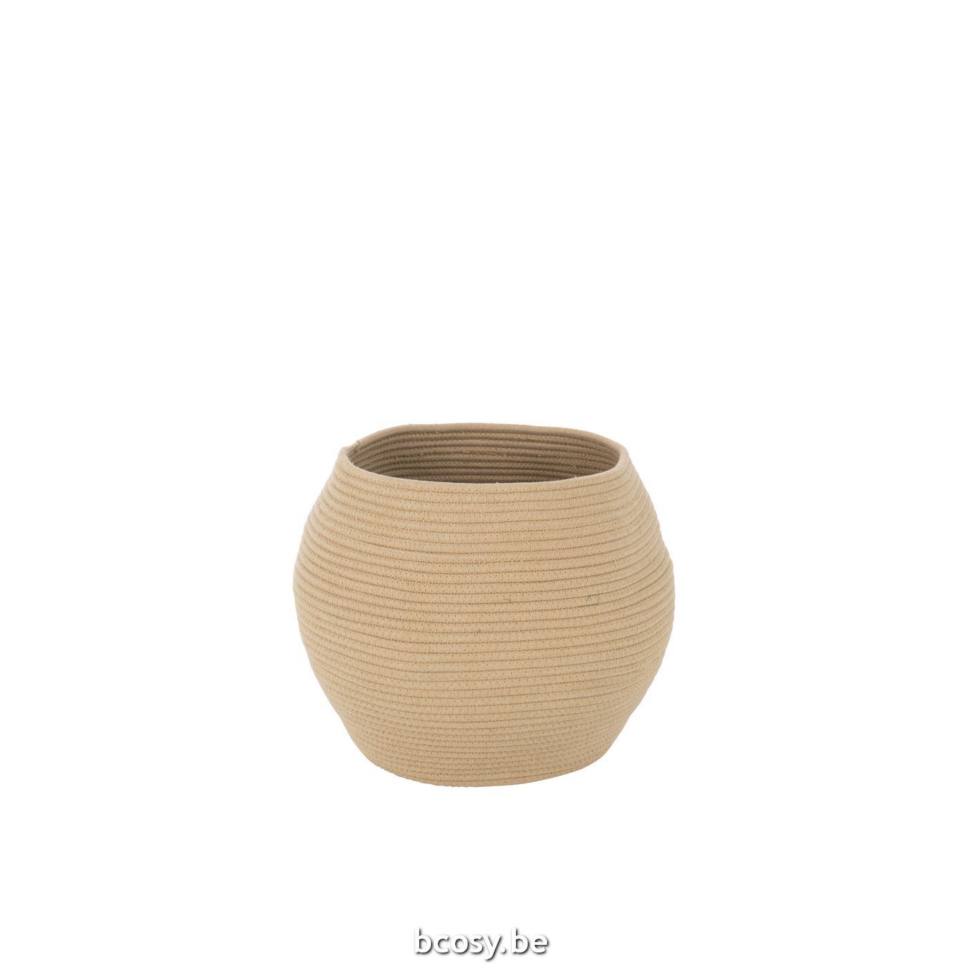 J-Line Spoel Mand Rond Textiel Beige L48xB58xH24 cm