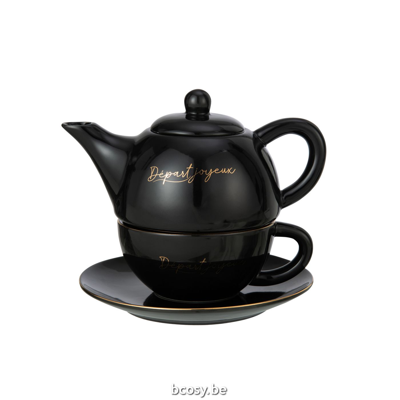 J-Line Tea For One Porselein Départ Joyeux Zwart-Goud