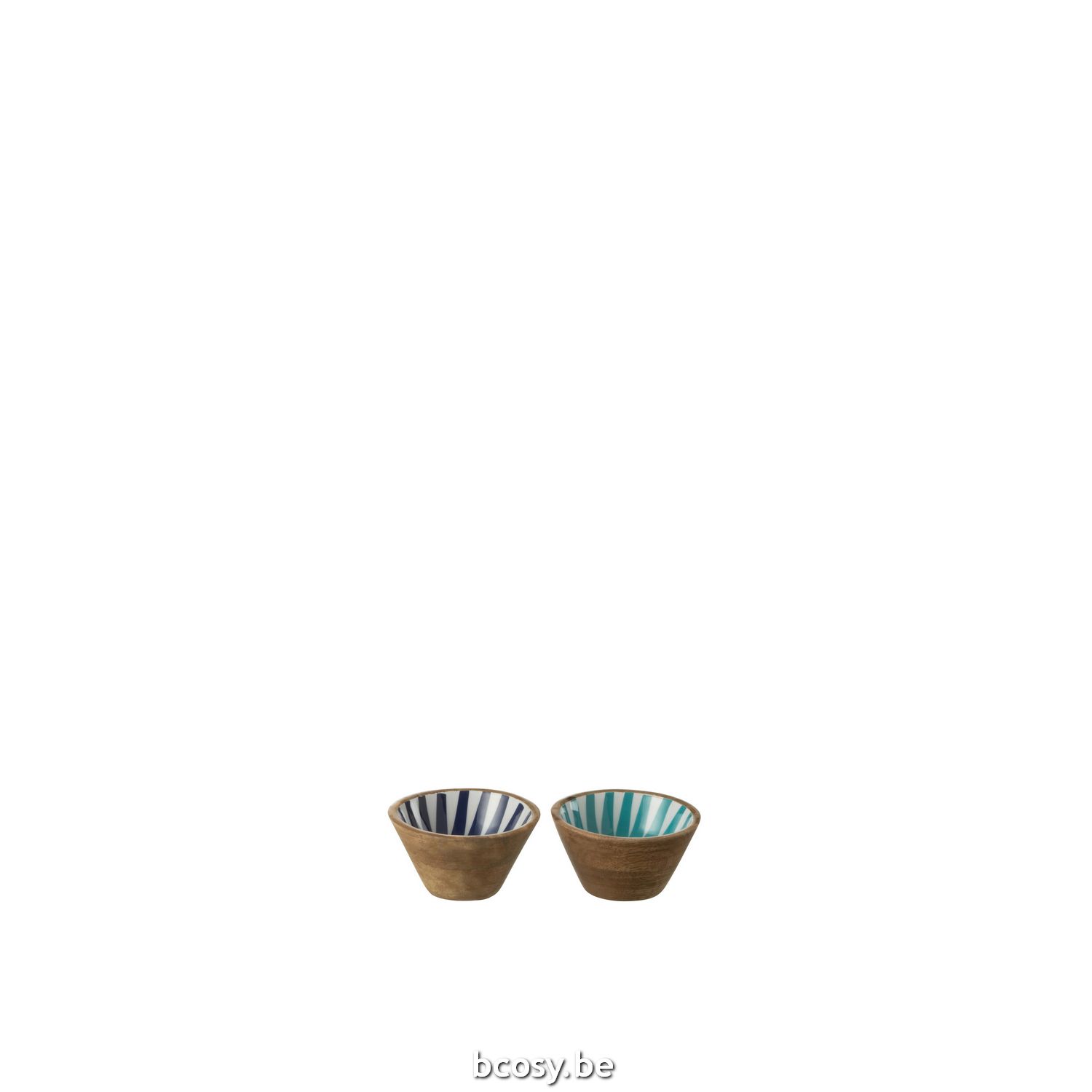 J Line Cuenco Rayas Madera Mango Azul/Blanco Extra Small Surtido De 2