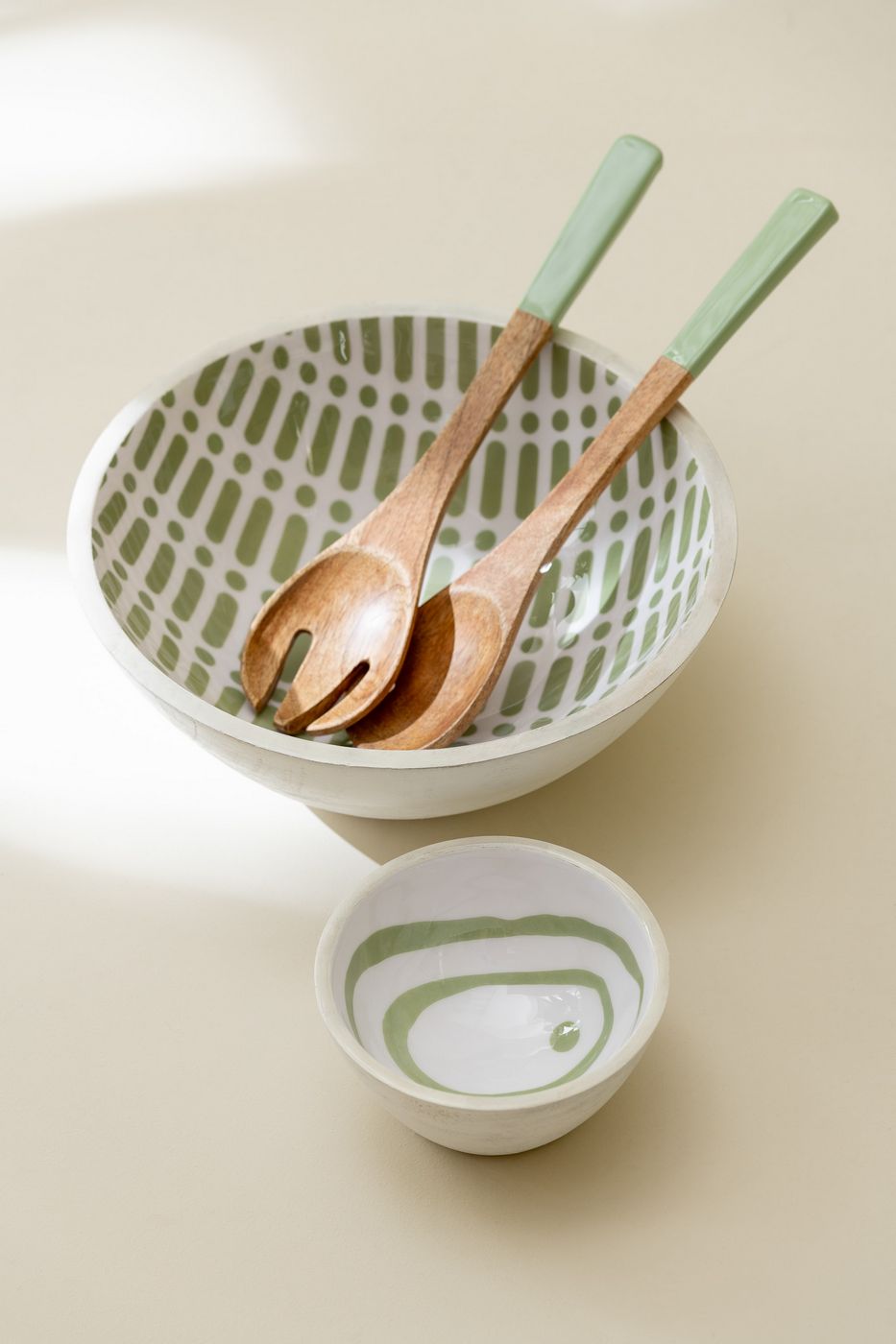 J Line Bol Madera De Mango Verde/Blanco Surtido Pequeño De 2
