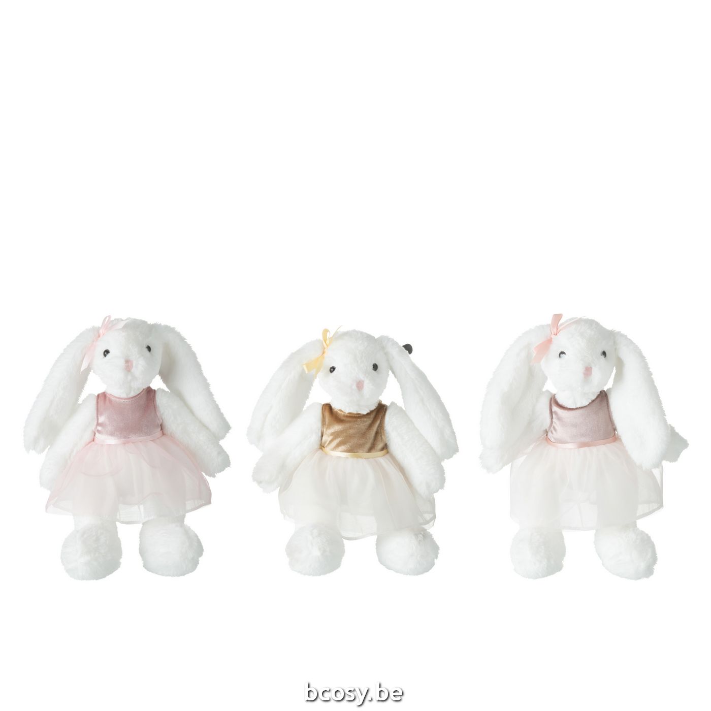 Jline Konijn Pluche Met Jurk Polyester Wit Assortiment Van 3