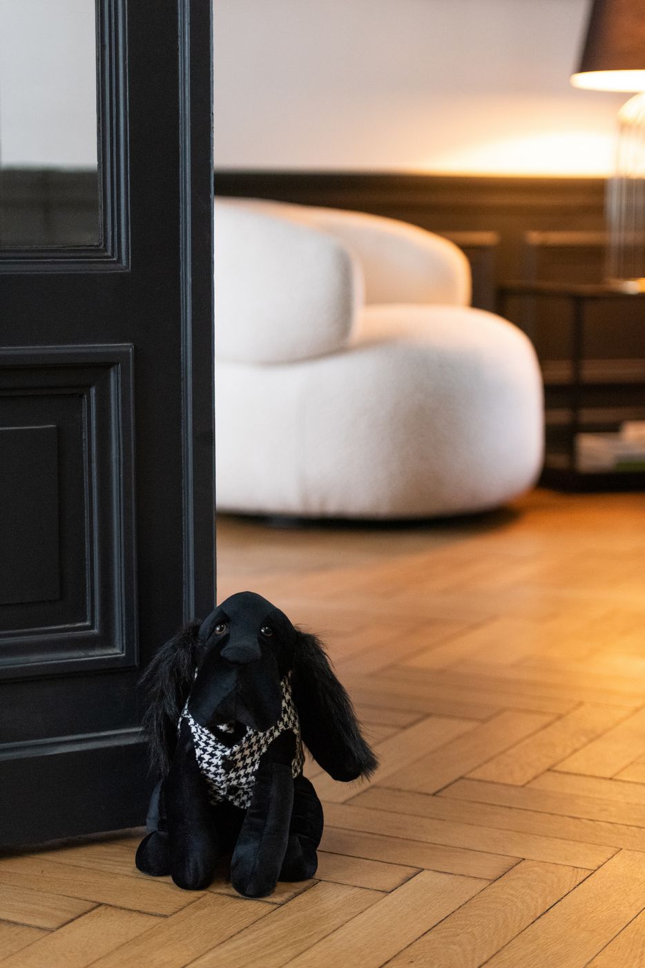 Jline Deurstop Hond Pied De Poule Polyester Zwart Wit