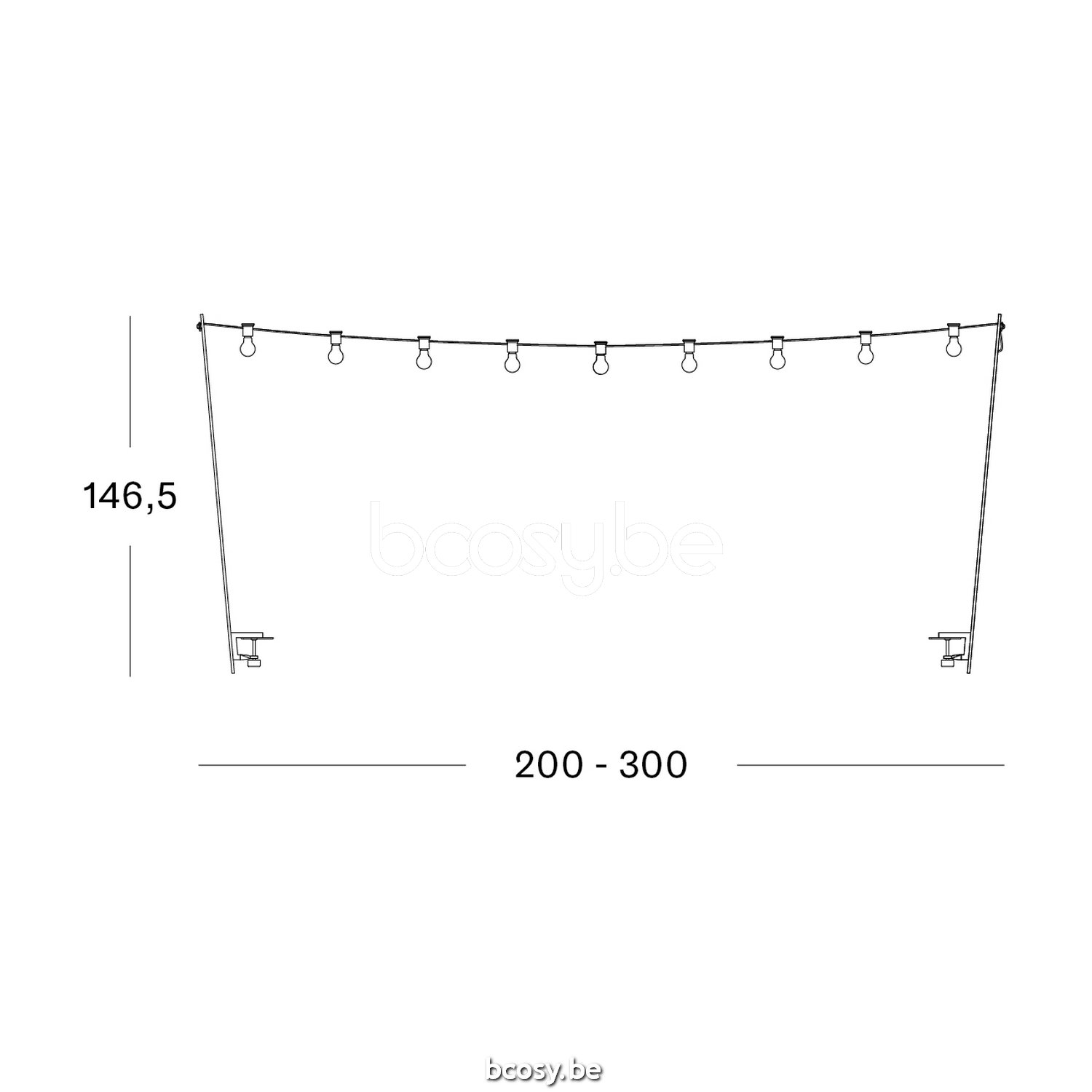 Afmetingen/Dimensions/Dimensionen: B=200-300 cm H=147 cm