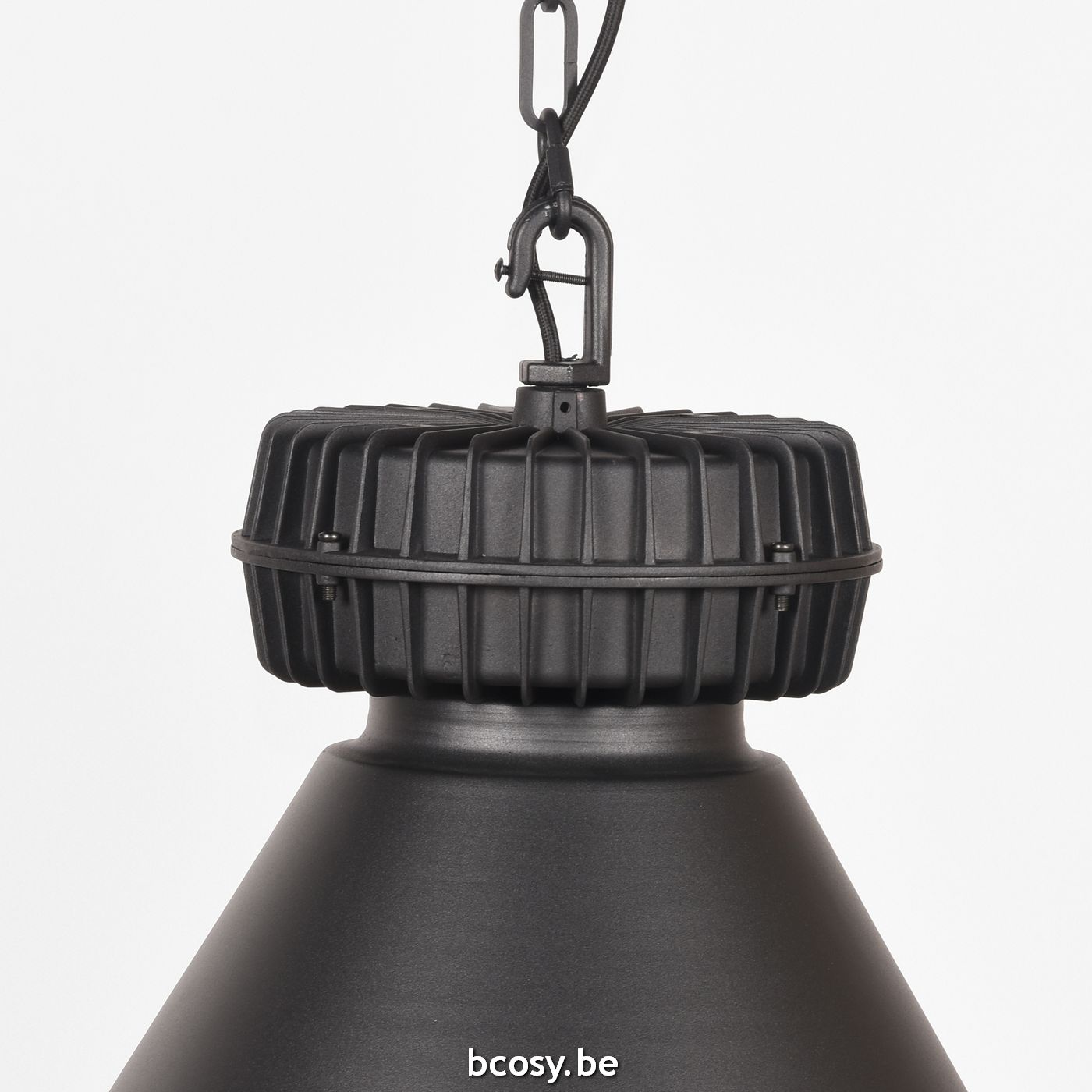 Hanglamp Duisburg van LABEL51 is een enorm grote, robuuste lamp, uitgevoerd in de kleur zwart, geinspireerd op de ouderwetse fabriekslamp.