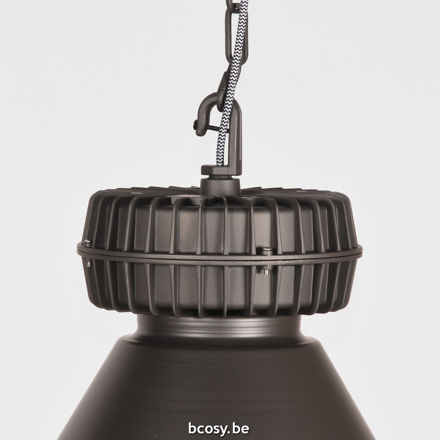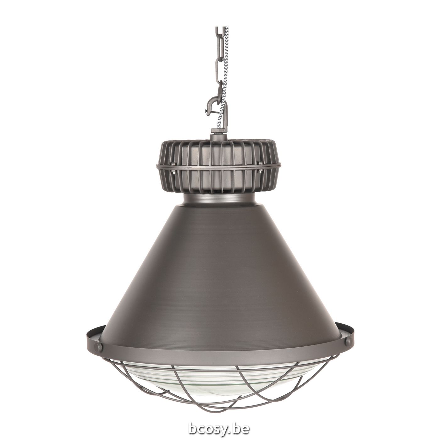 Hanglamp Duisburg van LABEL51 is een enorm grote, robuuste lamp, uitgevoerd in de kleur burned steel, geïnspireerd op de ouderwetse fabriekslamp.