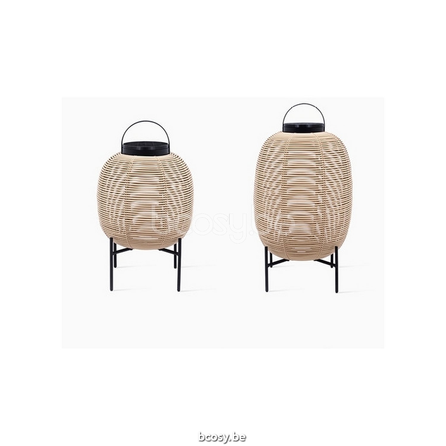 English: Vincent Sheppard Tika Lantern Steel Base Small Black Steel frame Camel Wicker-rope Polyethylene