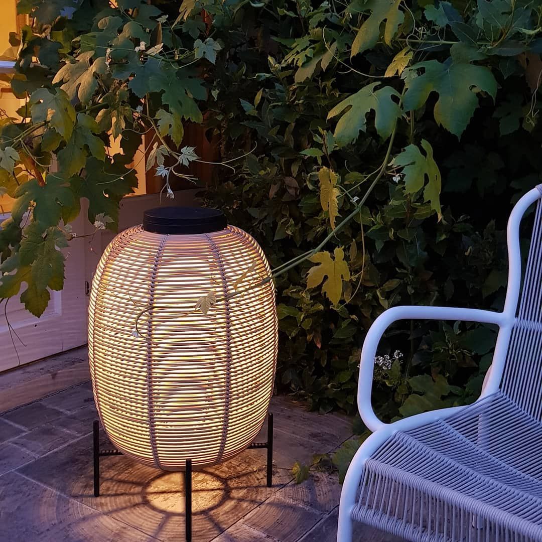 Material: Outdoor lamp in HDPE wicker on a powder coated aluminium frame. With solar led module. 3W solar LED module with light sensor included. Warm white light (2700K). EU/UK/US/AU adapter included. 6 - 8 hours light per full charge